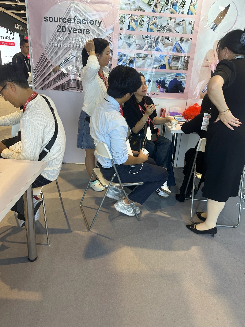 ブースの大きなハイライトは、幅広い品揃えでした。プロ仕様のネイルブラシ。精度と耐久性を重視して設計されたこのシリーズは、プライベート ラベルの開発者や卸売バイヤーから特に関心を集めました。プロフェッショナル ネイル ブラシ コレクションは、さまざまな用途の要求を満たすために、さまざまな毛密度、先端形状、ハンドル素材を備えています。流通業者やサプライヤーにとって、このような専用ツールを工場から直接調達することは、コスト効率と品質の一貫性において明らかな利点をもたらしました。